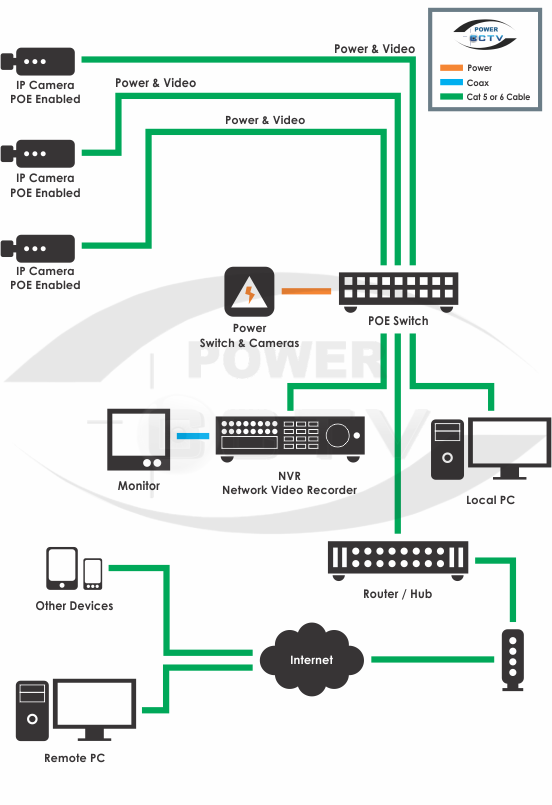 This is the device that ultimately will supply the POE power for those Ip cameras with POE connection, and when you decide to connect a POE router to an IP camera or set of CCTV Cameras, you might have to contemplate the number of POE ports that a router comes with, in order to plan your layout. You can use one or more POE router to connect a set of IP cameras, and all of the POE routers don’t have to be in the same location, as long as the are connected, and belong to the same Network.